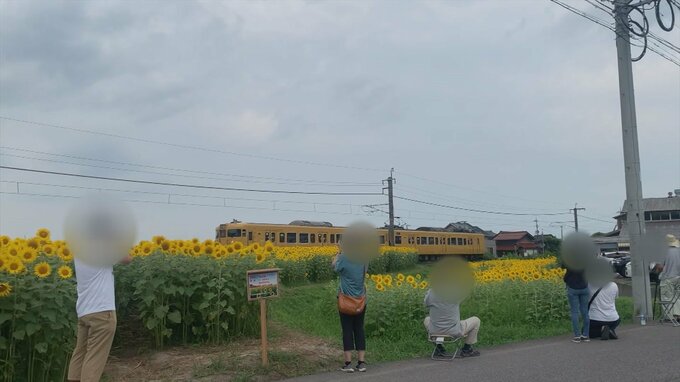 「後ろに見えるひまわり畑、そして先の線路の途中に位置するこちらの木…明らかに人工的に切り取られているように見えます」