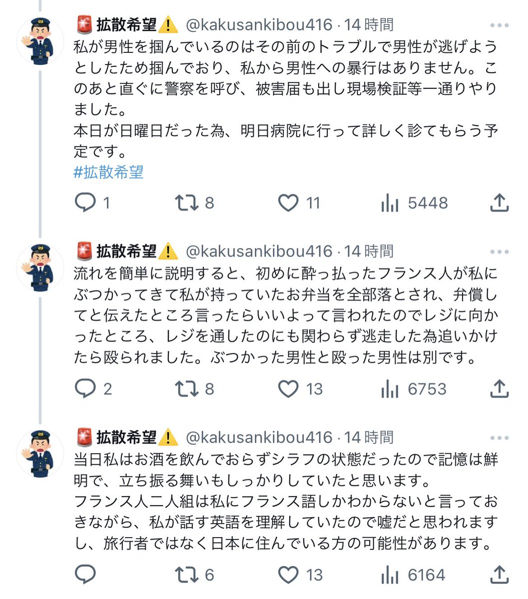 フランス人Aとぶつかり弁当の弁償を女がお願いしたら一緒にコンビニに来ていたAの友人のフランス人Bが払うよと言い