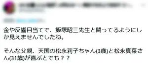 男は池袋暴走事故で妻子を亡くした松永拓也さんに対し「(活動は)金目当て」などと誹謗(ひぼう)中傷する内容を投稿したとして、警視庁に先月、侮辱容疑で書類送検されている。