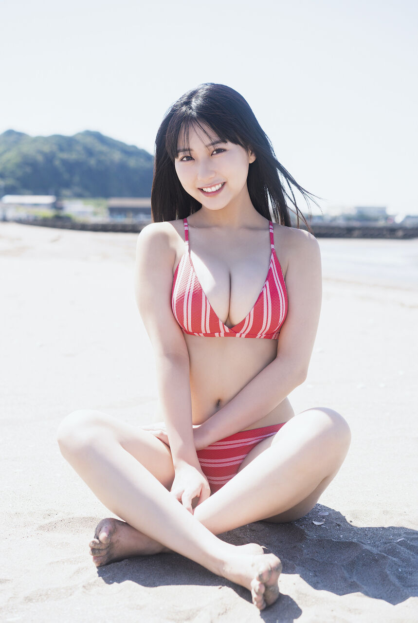投稿では「FRIDAY もうゲットした?」とコメントを寄せるとともに、鮮烈な赤いビキニを着用したグラビアショットを公開した。